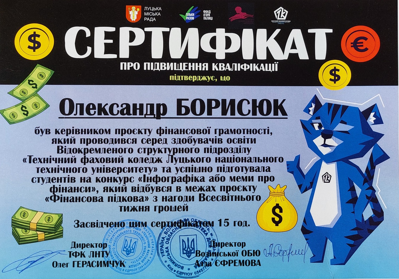 Відокремлений структурний підрозділ "Технічний фаховий коледж Луцького національного технічного університету" (грамота, подяка)
