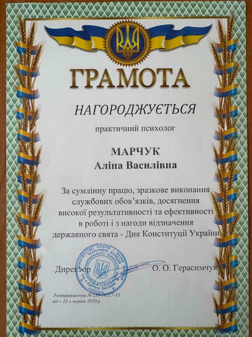 З вересня 2013 року і до теперішнього часу практичний психолог ТФК ЛНТУ.